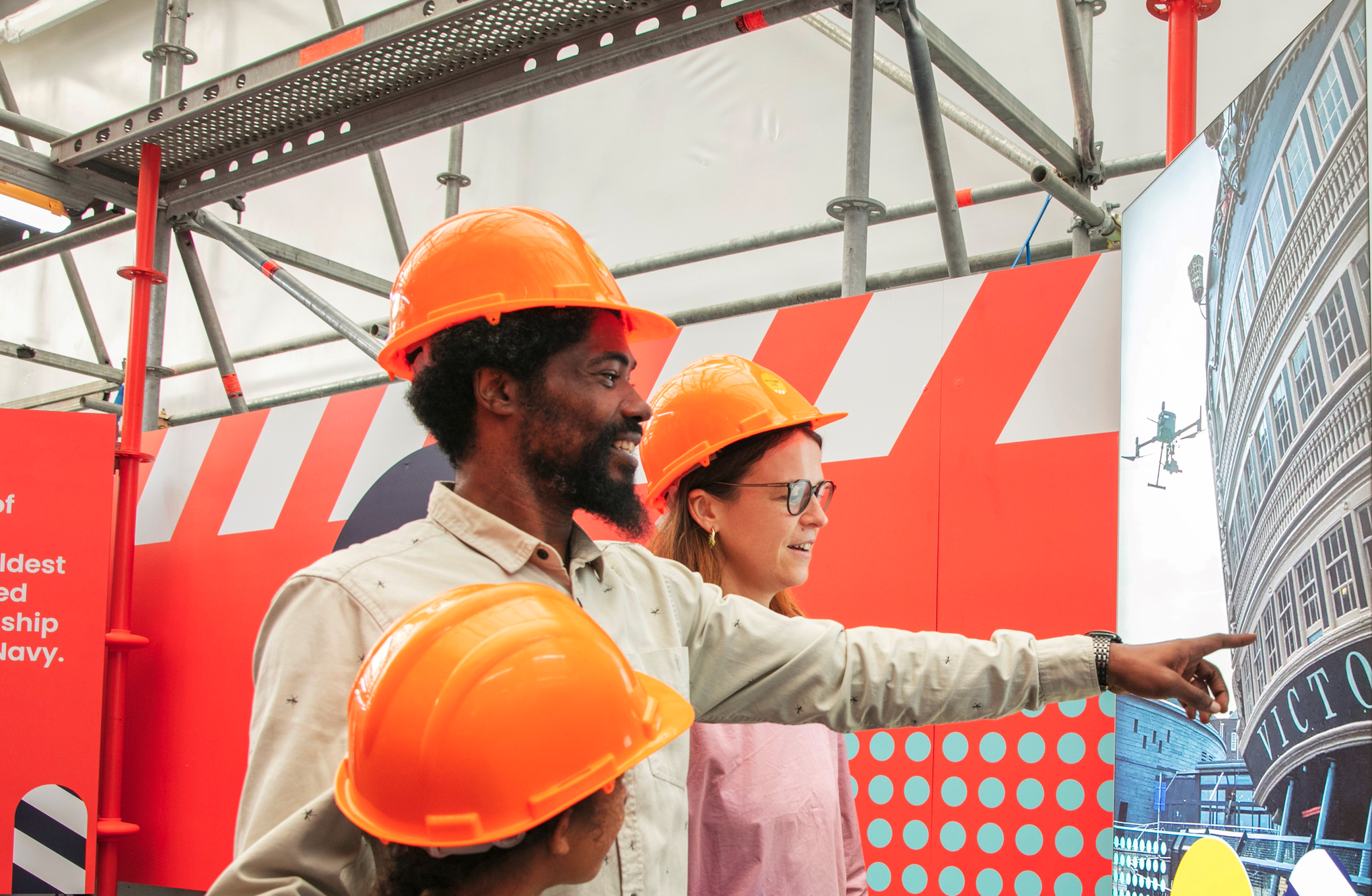 Launched 248 years ago, the HMS Victory is currently undergoing a £42million renovation project to protect and restore its aging timbers for generations to come. The National Museum of the Royal Navy (NMRN) have approached us to help interpret the ongoing works, on the site surrounding the large pavilion structure that covers the Victory in the dry dock.